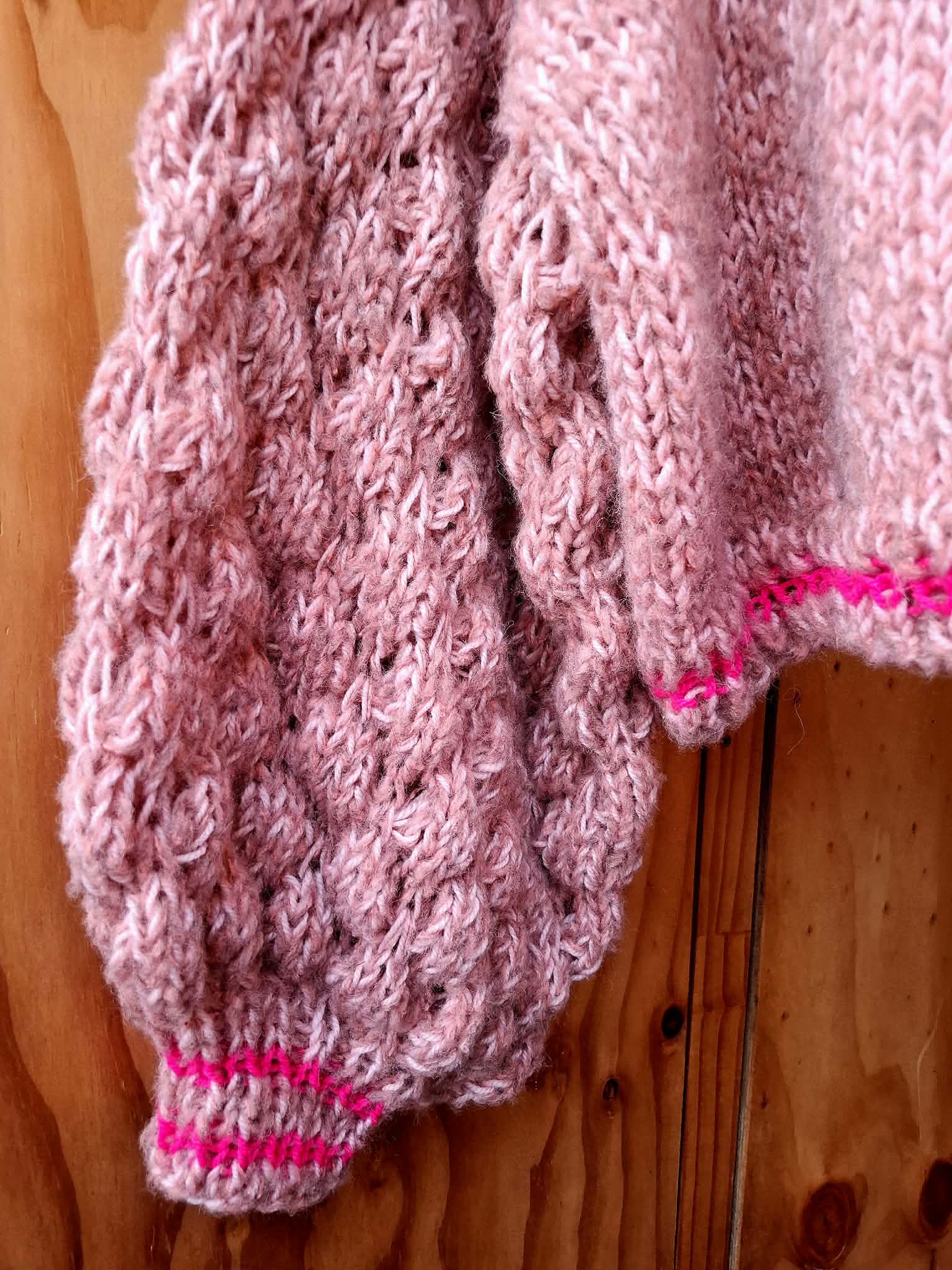 A cosy rose alpaca-wool jumper with hot-pink ribbed stripes — effortlessly stylish and beautifully warm.